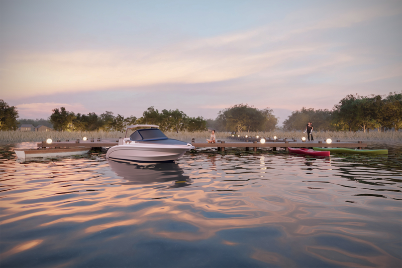 Na terenie powstanie ciekawa część rekreacyjna do wyłącznego użytku właścicieli zawierająca plac zabaw dla dzieci, boisko, miejsce na grilla, zewnętrzne jacuzzi, a także prywatną plażę i pomost z przystanią dla kajaków, czy łodzi. Piękna okolica, dostęp do wody oraz powstająca infrastruktura sprawiają, że to miejsce staje się idealnym azylem do życia i odpoczynku.